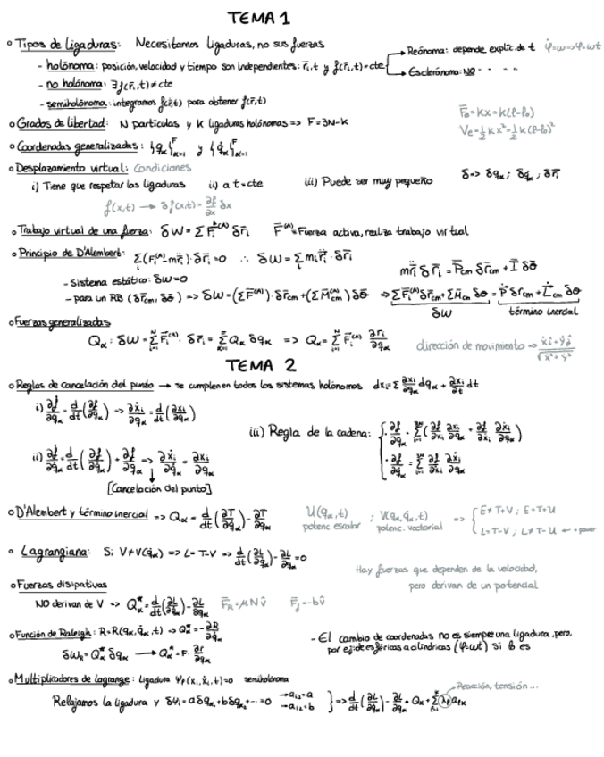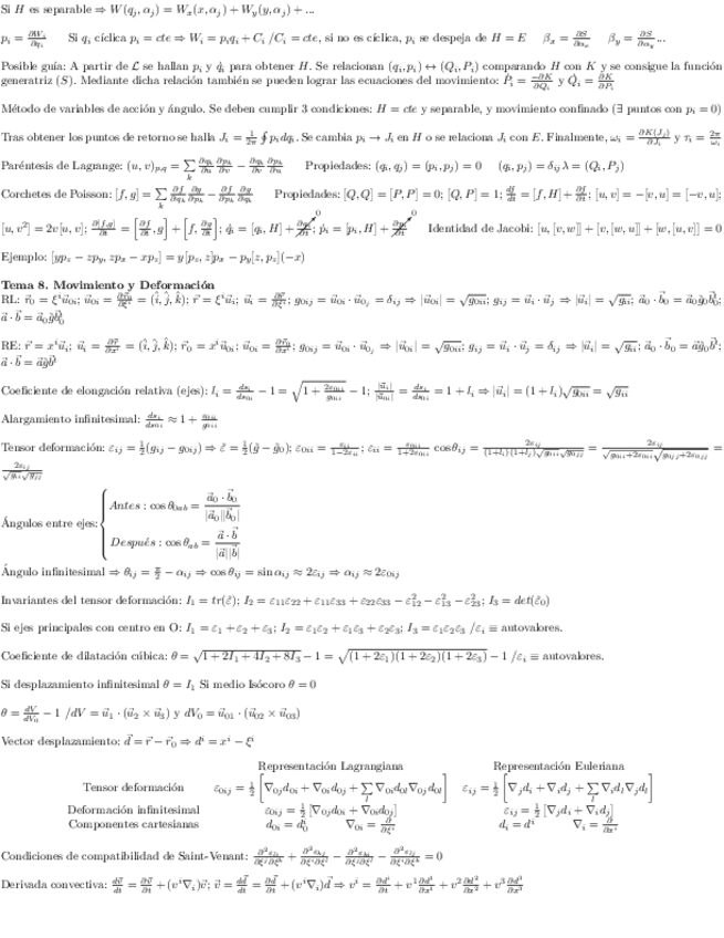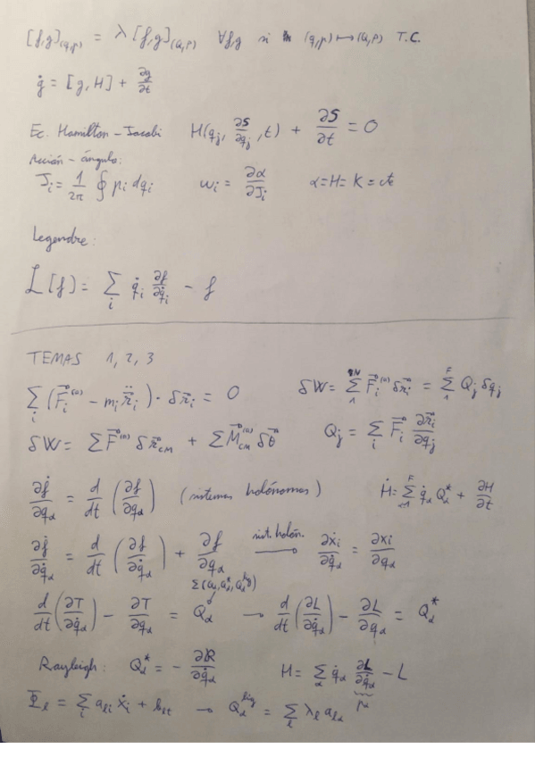 Formulario completo de Mecánica Analítica, 6 caras que es lo permitido en el examen