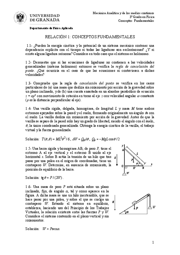 He publicado nuevos ejercicios de 3º Mecánica analítica y de los medios continuos: Relacion-1-Resuelta.pdf