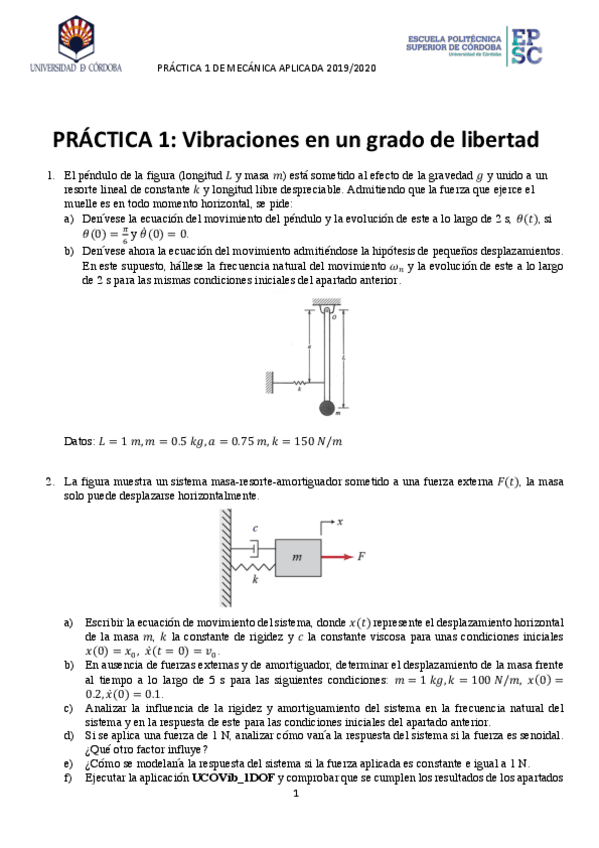 He publicado nuevos apuntes de 3º Mecánica Aplicada: PRACTICAS VIBRACIONES CURSO 20/21