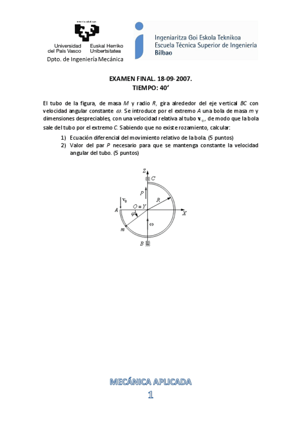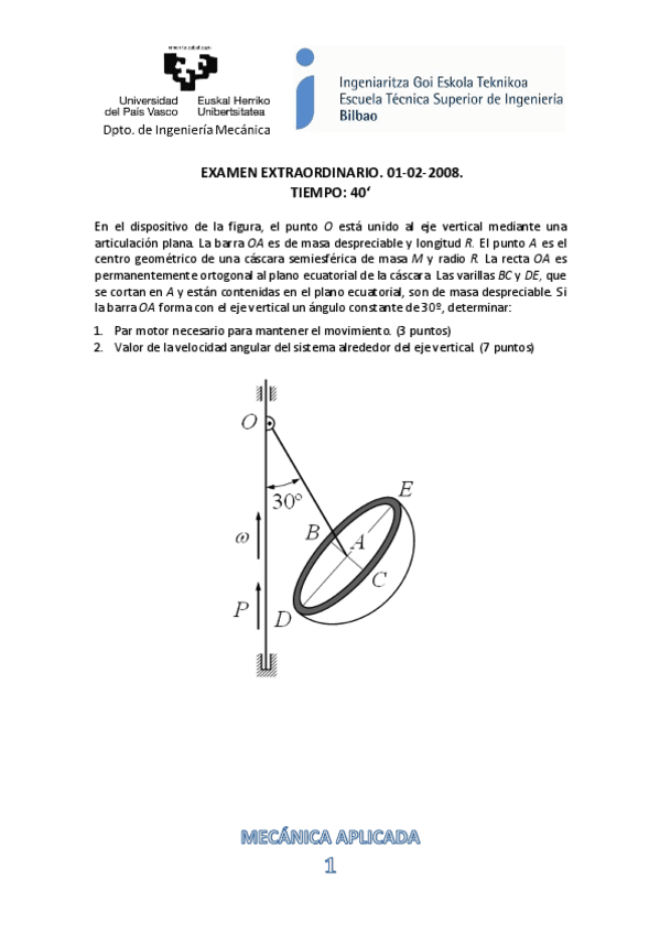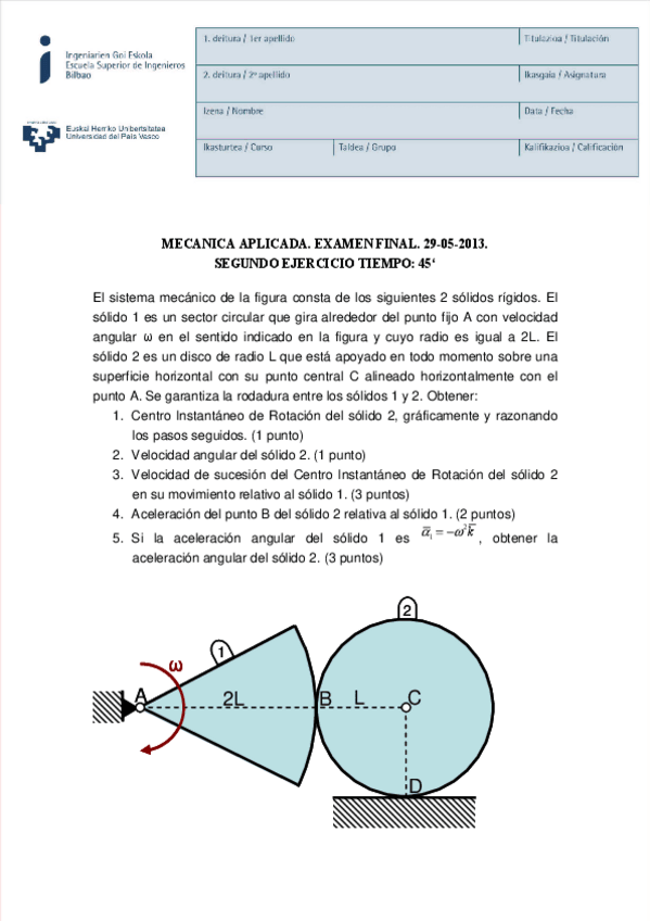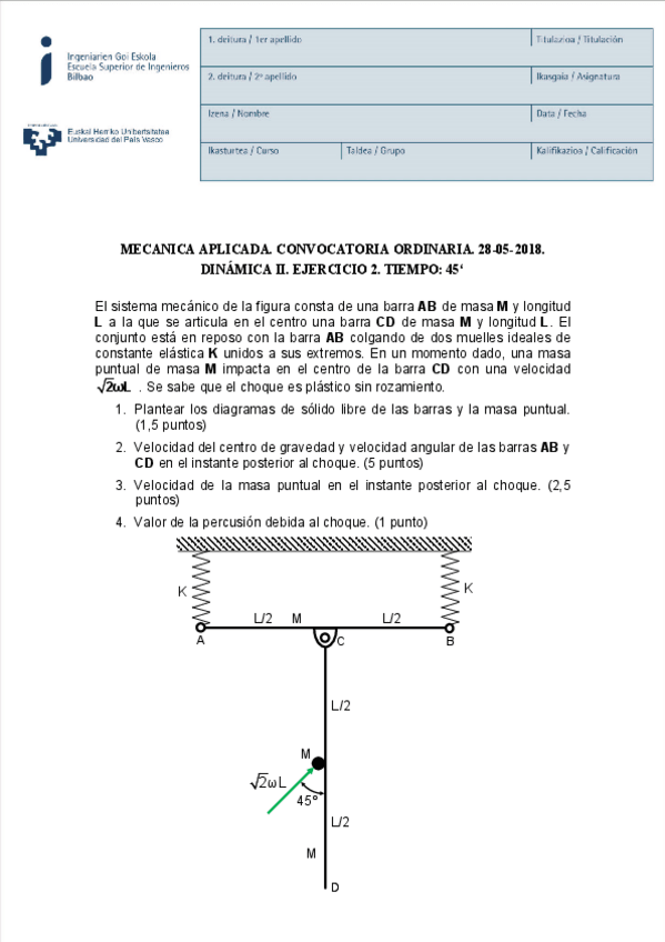 He publicado nuevos examenes de 2º Mecánica Aplicada: Ejerciciopresencial.pdf