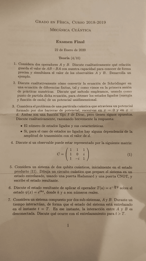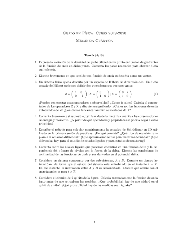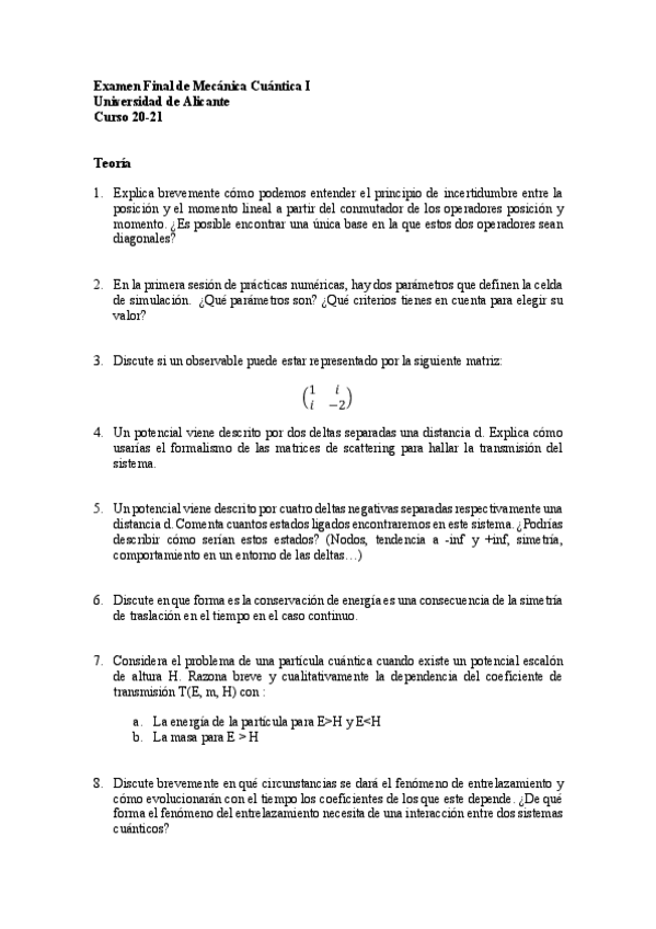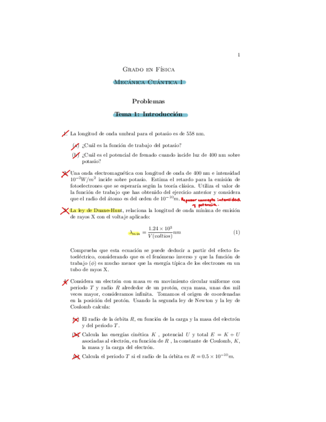 Teoría y Ejercicios Cuántica I