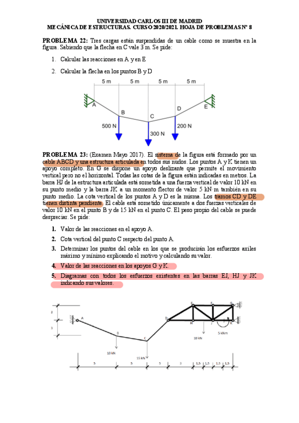 He publicado nuevos ejercicios de 2º Mecanica de Estructuras: Ejercicios-de-cables.pdf