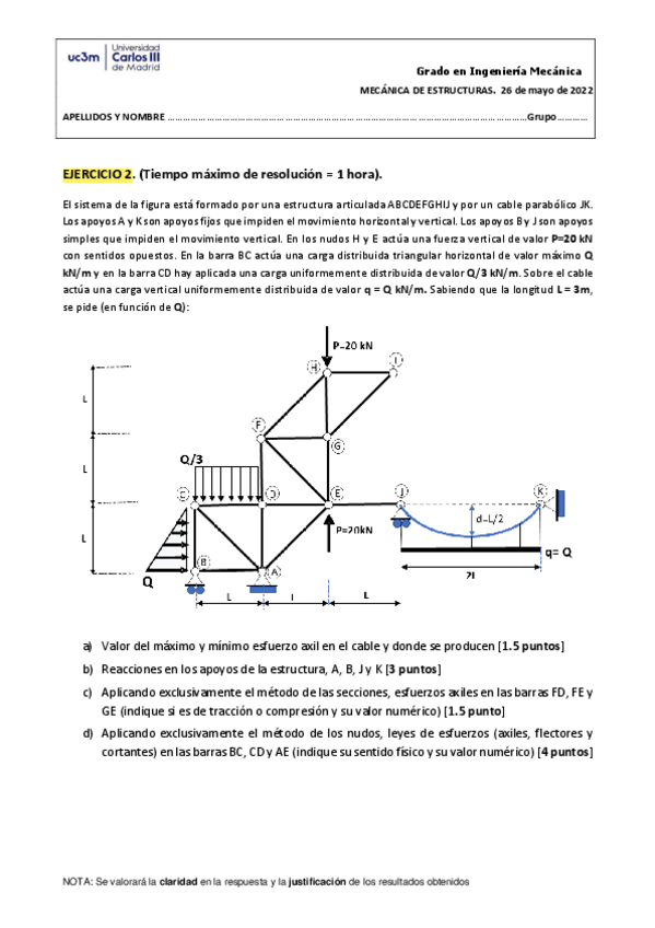 He publicado nuevos ejercicios de 2º Mecanica de Estructuras: Problemas-Articuladas-y-cables.pdf