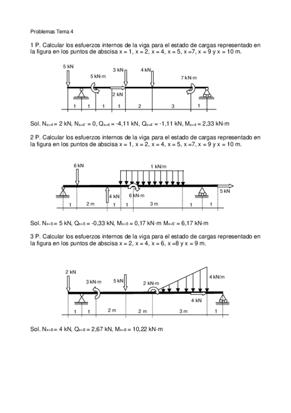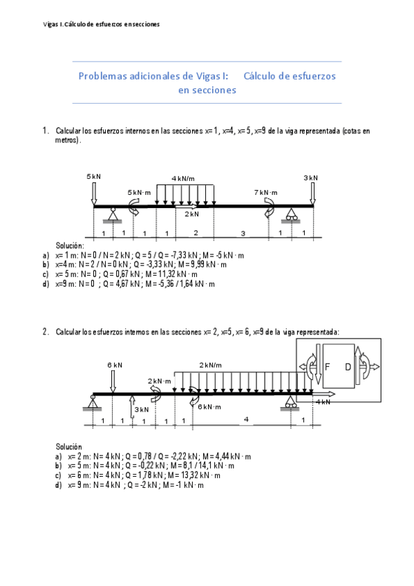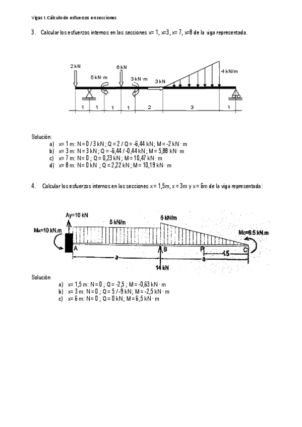 Ejercicios resueltos Tema 4. Calcula de esfuerzos internos puntuales en Vigas