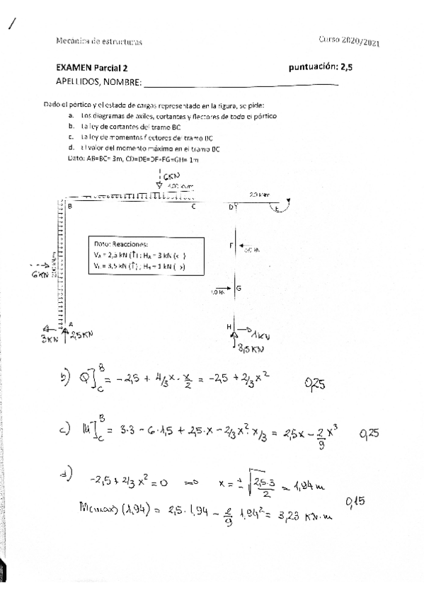 He publicado nuevos examenes de 2º Mecanica de Estructuras: Sol.-porticos-7-enero22.pdf