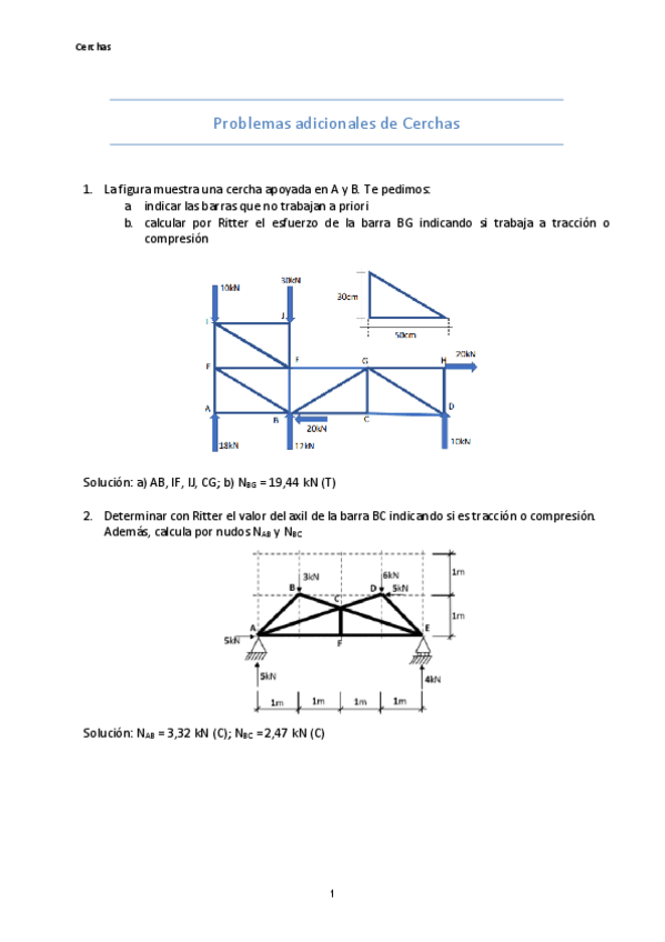 He publicado nuevos ejercicios de 2º Mecanica de Estructuras: ProblemasadicionalesCerchas-1.pdf