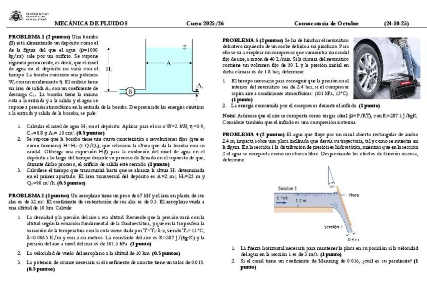 He publicado nuevos examenes de 2º Mecánica de Fluidos: EXAMEN-Octubre2025-Problemas-RESUELTO.pdf