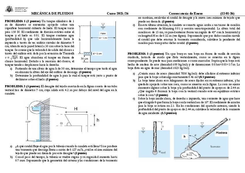 He publicado nuevos examenes de 2º Mecánica de Fluidos: Solucion-Examen-Enero-2026.pdf