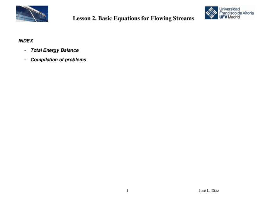 He publicado nuevos apuntes de 3º Mecánica de Fluidos: Lesson 2. Equation for Flowing Streams