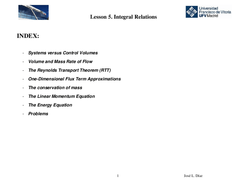 He publicado nuevos apuntes de 3º Mecánica de Fluidos: Lesson 5. Integral Relations of a fluid