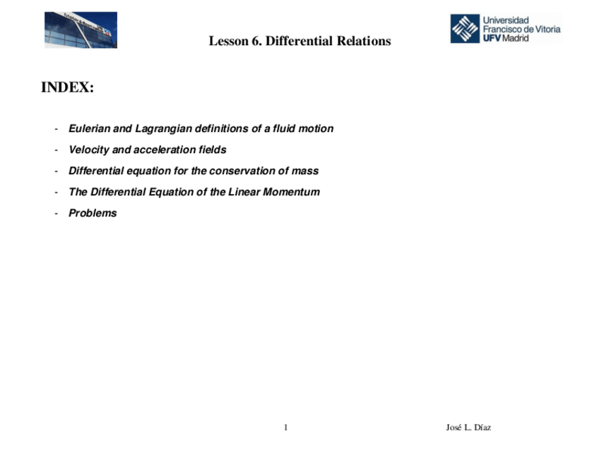 He publicado nuevos apuntes de 3º Mecánica de Fluidos: Lesson 6. Differential fluid Relations