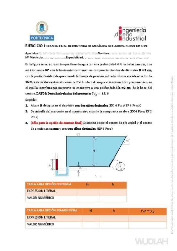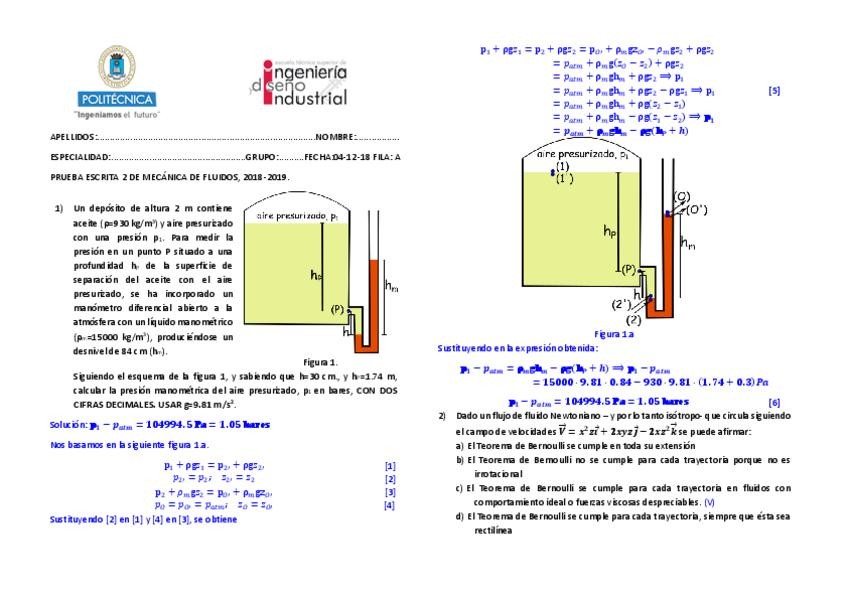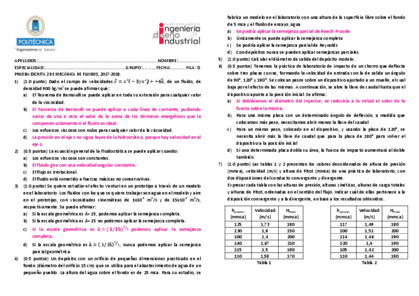 EXÁMENES MECÁNICA DE FLUIDOS
