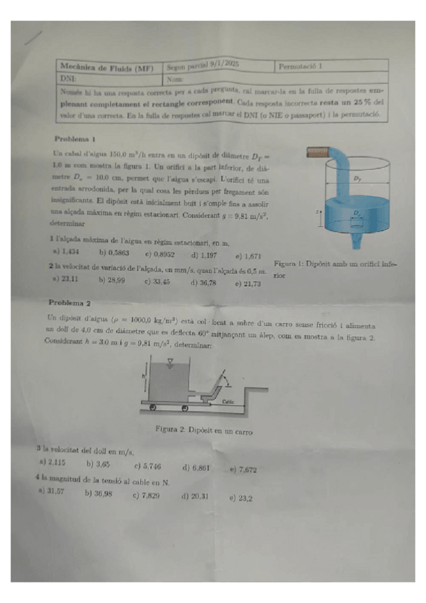 He publicado nuevos ejercicios de 2º Mecánica de Fluidos: excercicis-parcial-1.pdf