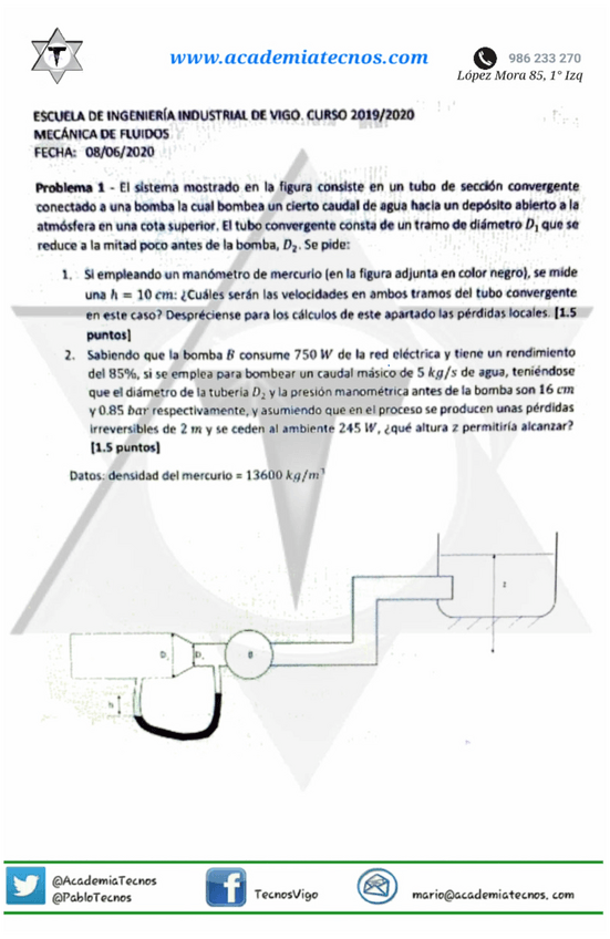 He publicado nuevos examenes de 2º Mecánica de Fluidos: Julio-2020-Secundina.pdf