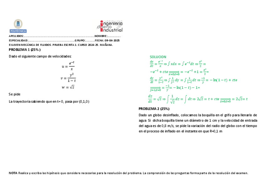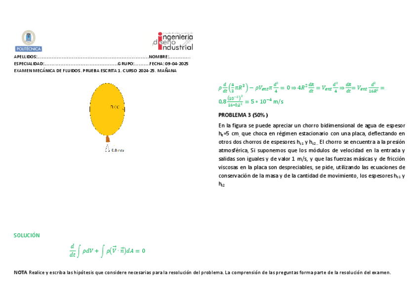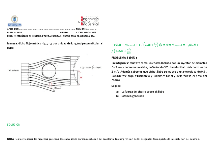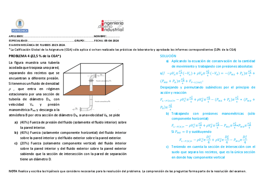 He publicado nuevos examenes de 2º Mecánica de Fluidos: SOL.PE1junio2024.pdf
