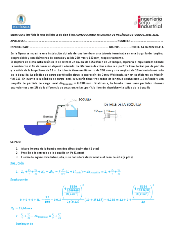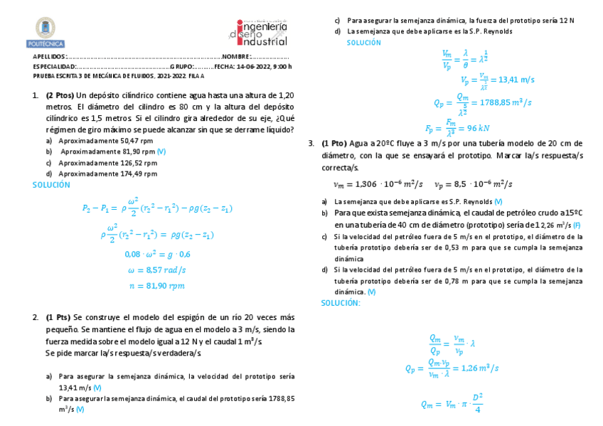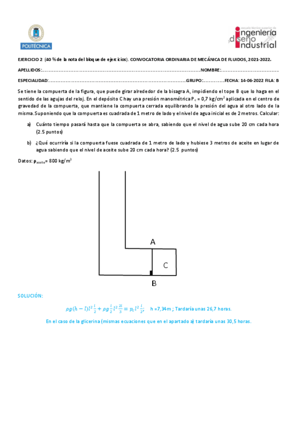 He publicado nuevos examenes de 2º Mecánica de Fluidos: PRUEBA-ESCRITA2-ENERO-2324-mecanica.pdf