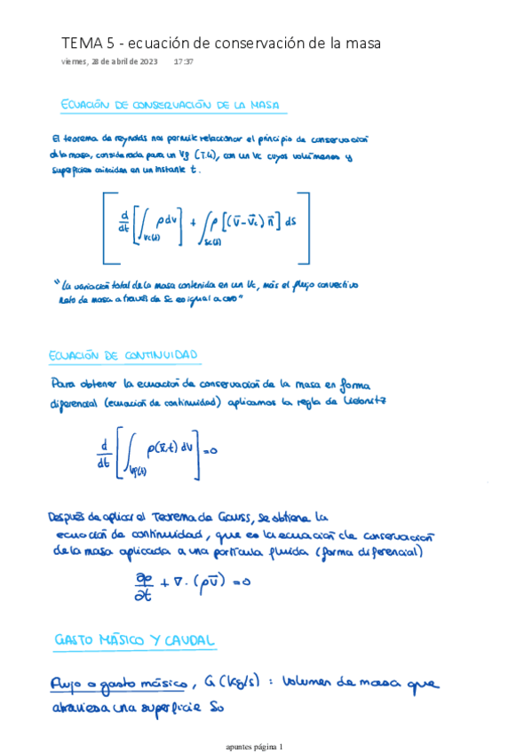 He publicado nuevos apuntes de 2º Mecánica de Fluidos: TEMA-5-ecuacion-de-conservacion-de-la-masa.pdf