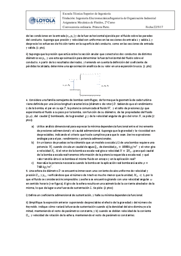 He publicado nuevos examenes de 2º Mecánica de Fluidos: mf_ordinaria_2017_soluciones.pdf