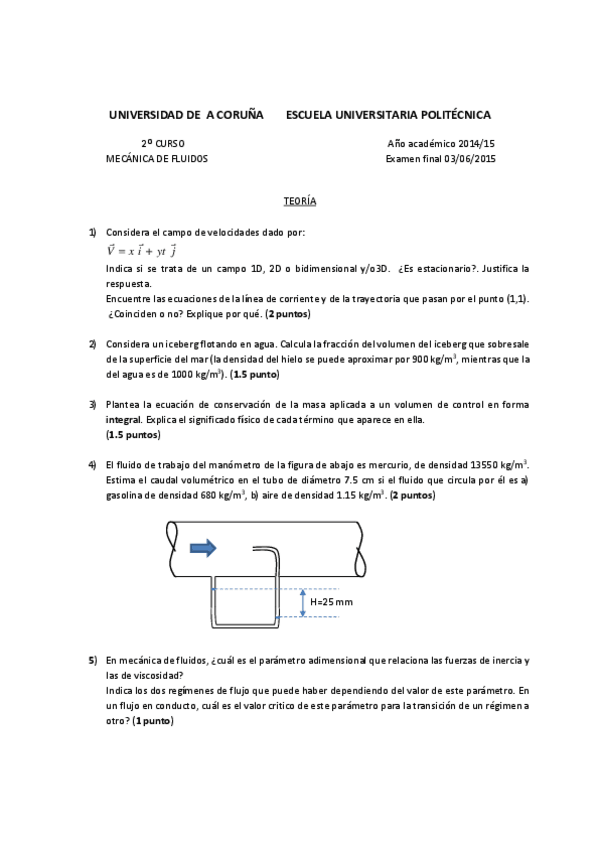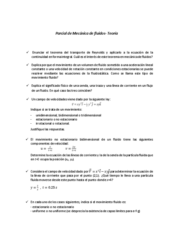 He publicado nuevos examenes de 2º Mecánica de Fluidos: Ejemplos de posibles preguntas de teoría