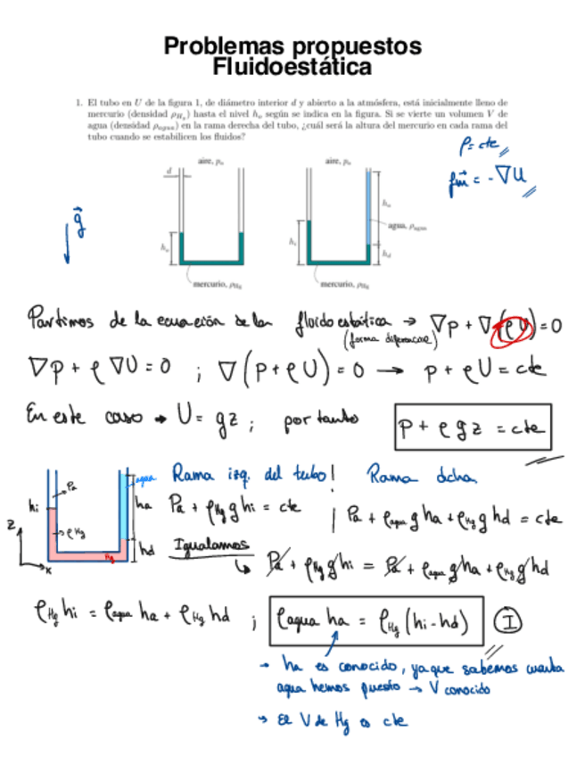 Todos los problemas propuestos de fluidoestática resueltos paso a paso.