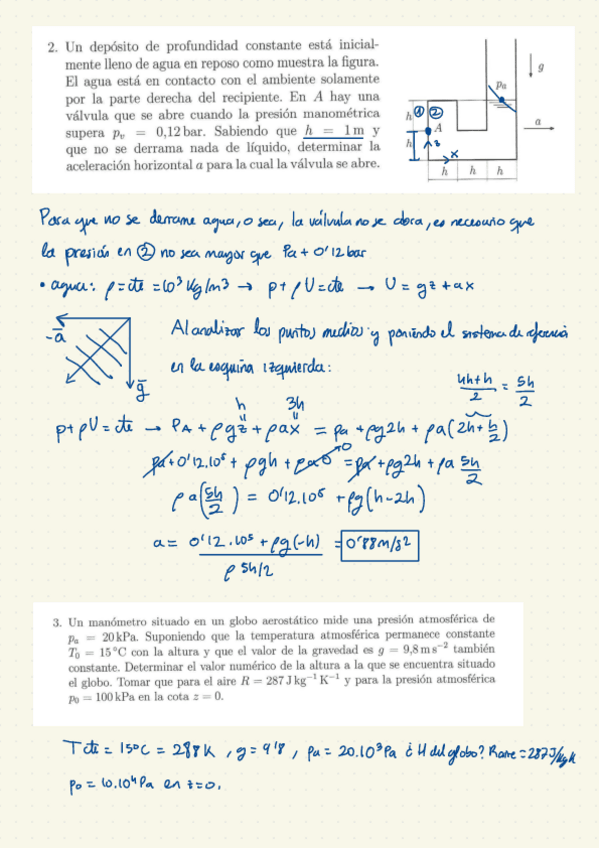 Ejercicios del libro y examen del tema Fluidostática
