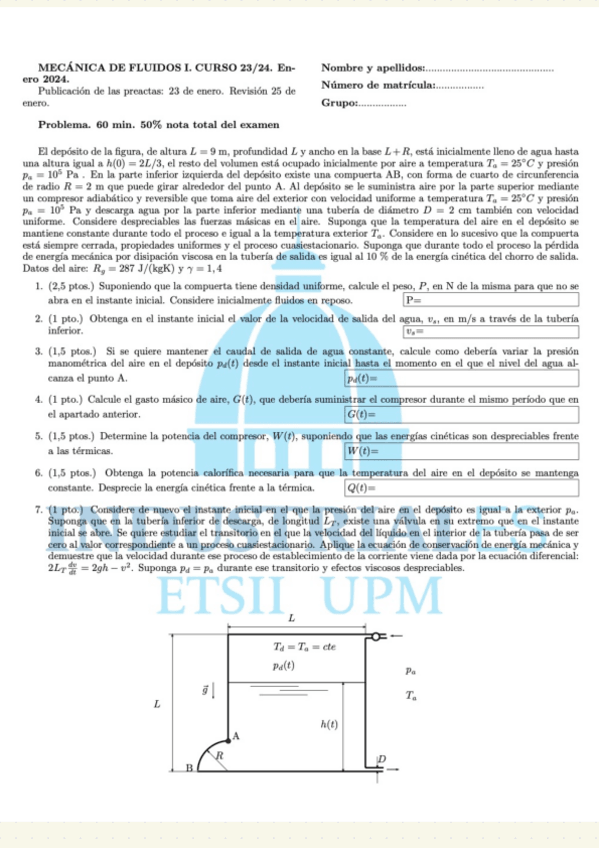 He publicado nuevos examenes de 3º Mecánica de Fluidos I: Examen-Problema-Julio-2024.pdf