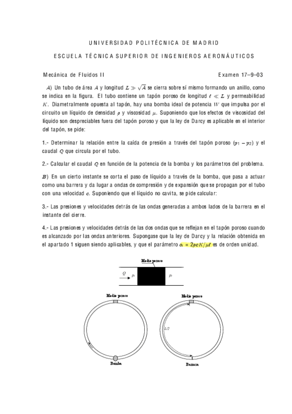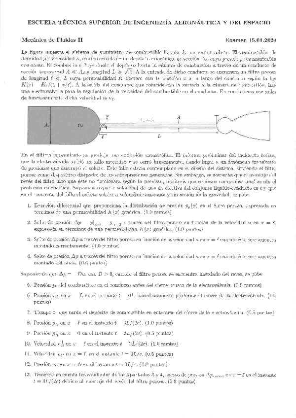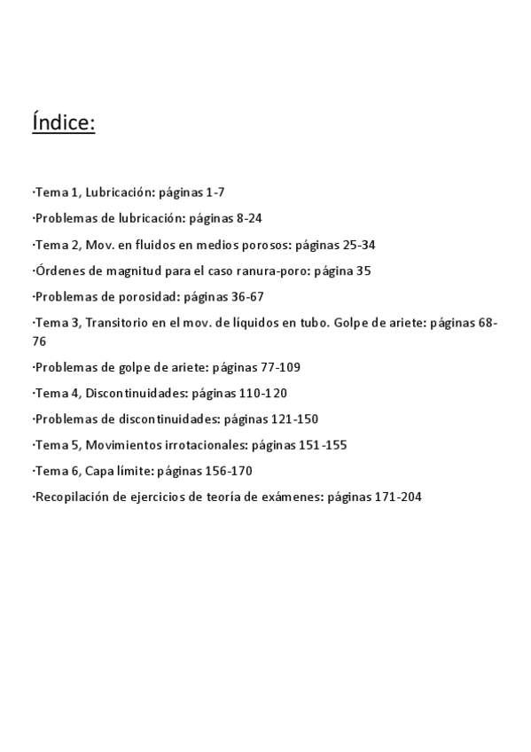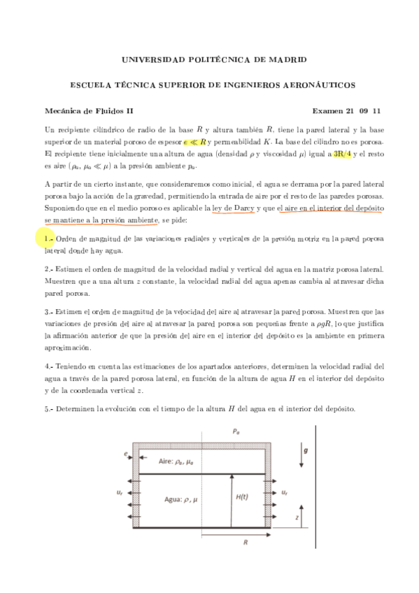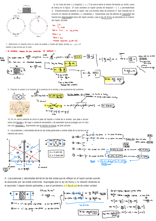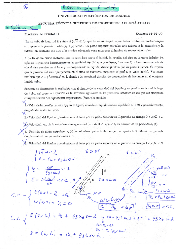 Recopilación de distintos ejercicios de los últimos años de exámenes de Fluidos. Tanto del tipo test como ejercicios de supersónico, porosos, golpe de ariete y lubricación