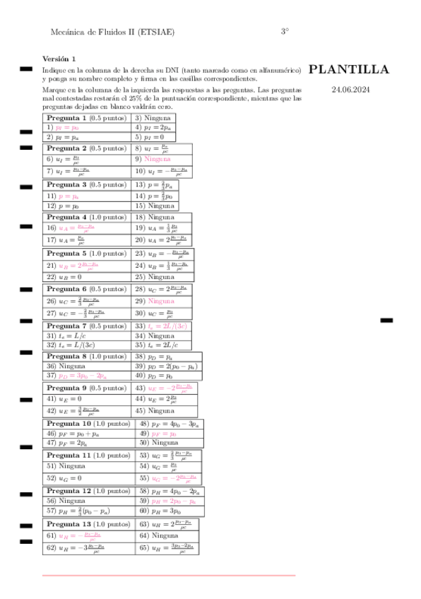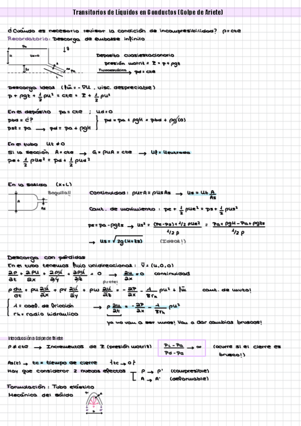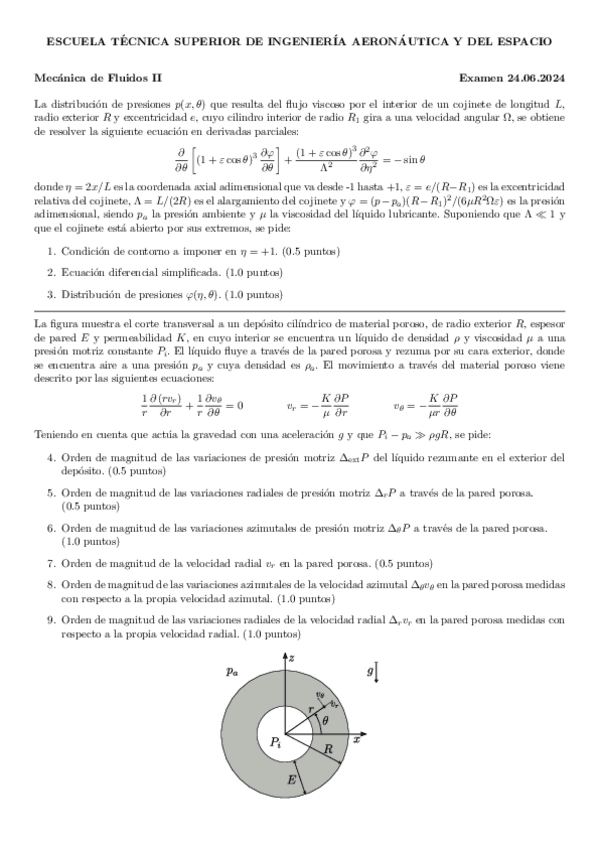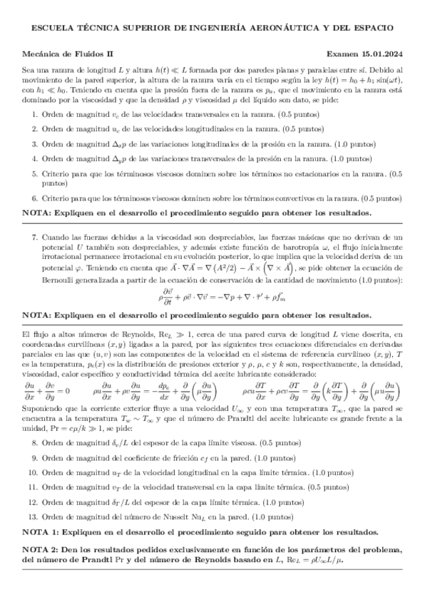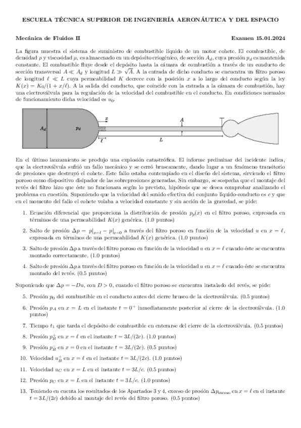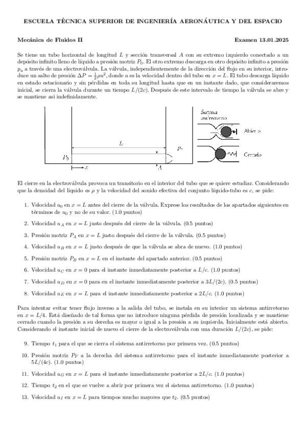 Recopilación de distintos ejercicios de los últimos años de exámenes de Fluidos. Tanto del tipo test como ejercicios de supersónico, porosos, golpe de ariete y lubricación
