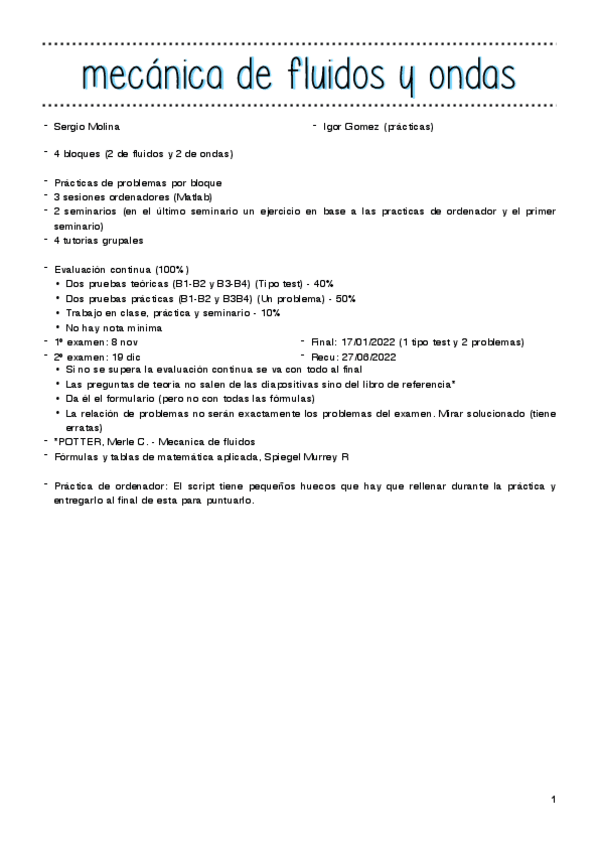 He publicado nuevos apuntes de 2º MECÁNICA DE FLUIDOS Y ONDAS: bloque 1 y 2