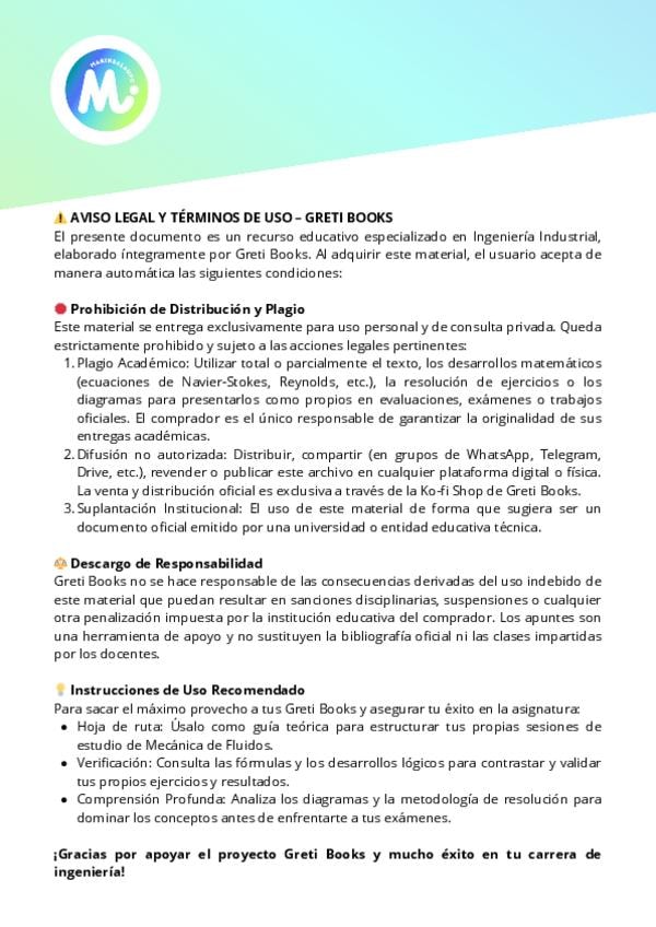 ¿Te pierdes con los balances de Navier-Stokes o el flujo compresible? No te la juegues con apuntes sucios o incompletos. 📘 CONSIGUE EL GRETI BOOK: TEORÍA COMPLETA (45 PÁGINAS) Todo el temario de la ESEIAAT optimizado, con desarrollos paso a paso y formulario premium. 💰 OFERTA ESPECIAL 30% DTO: Antes: ~~8,50 €~~ AHORA: 5,95 € (Solo hasta el 27 de Marzo) ¡Únete a los estudiantes de la UPC que ya están asegurando su aprobado con Greti Books! 🔗 DESCARGA AQUÍ LA GUÍA DEFINITIVA