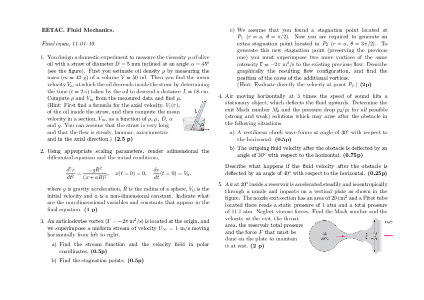 He publicado nuevos examenes de 2º Mecànica de Fluids: Examen-Final-2019.pdf