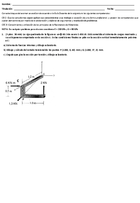 He publicado nuevos examenes de 2º Mecánica de Materiales: Primer Parcial 2022