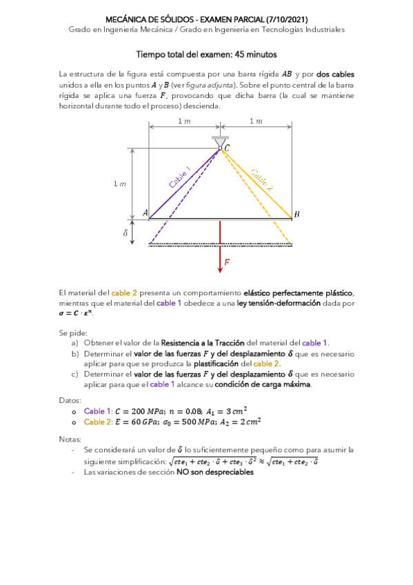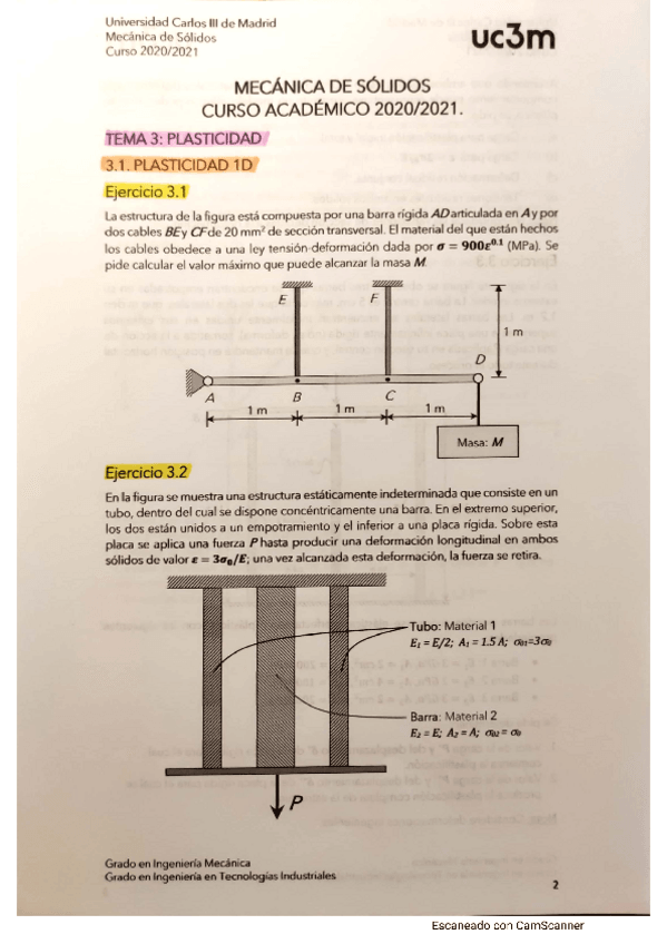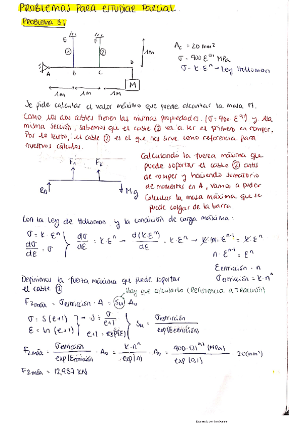 He publicado nuevos ejercicios de 4º Mecánica de Sólidos: Problemas-Plasticidad-1D-primer-parcial.pdf