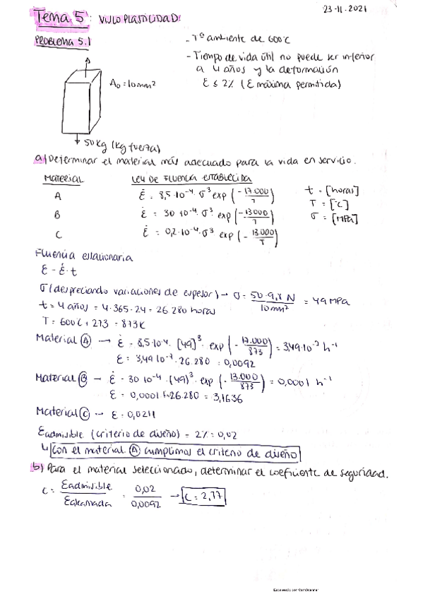 He publicado nuevos ejercicios de 4º Mecánica de Sólidos: Problemas-Viscoplasticidad.pdf