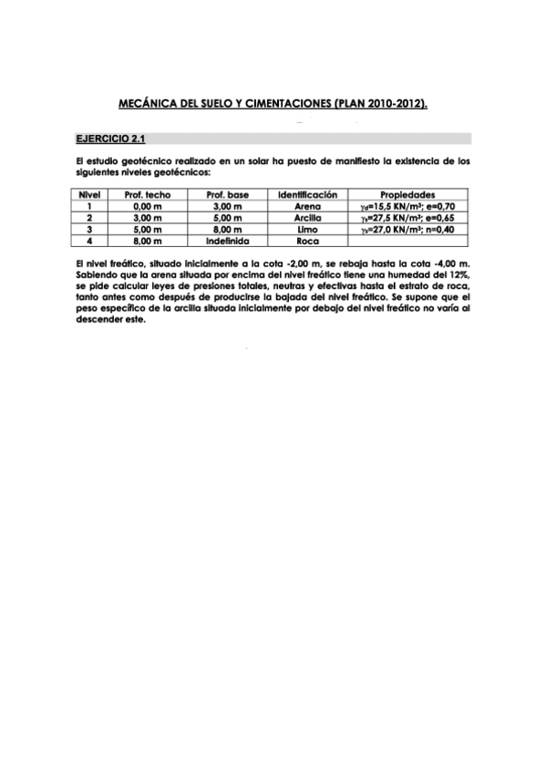 He publicado nuevos ejercicios de 3º Mecánica del Suelo y Cimentaciones: TEMA2.pdf