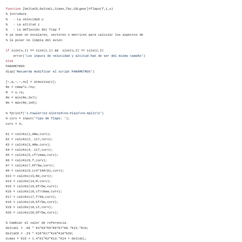 Estos scripts están de ayuda para el cálculo de rasgos de la polar no limpia del avión tales como los coeficientes K, el incremento de sustentación a ciertos flaps, el incremento de resistencia, la sustentación máxima....