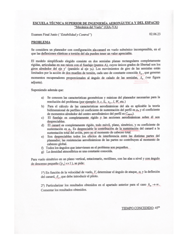 He publicado nuevos examenes de 3º Mecánica del Vuelo: Extra2023_Est y Contr_problema.pdf