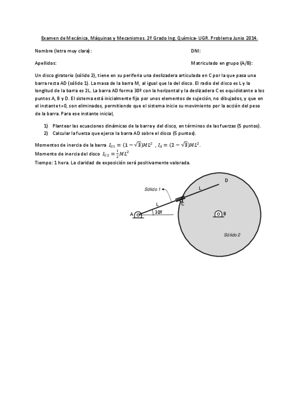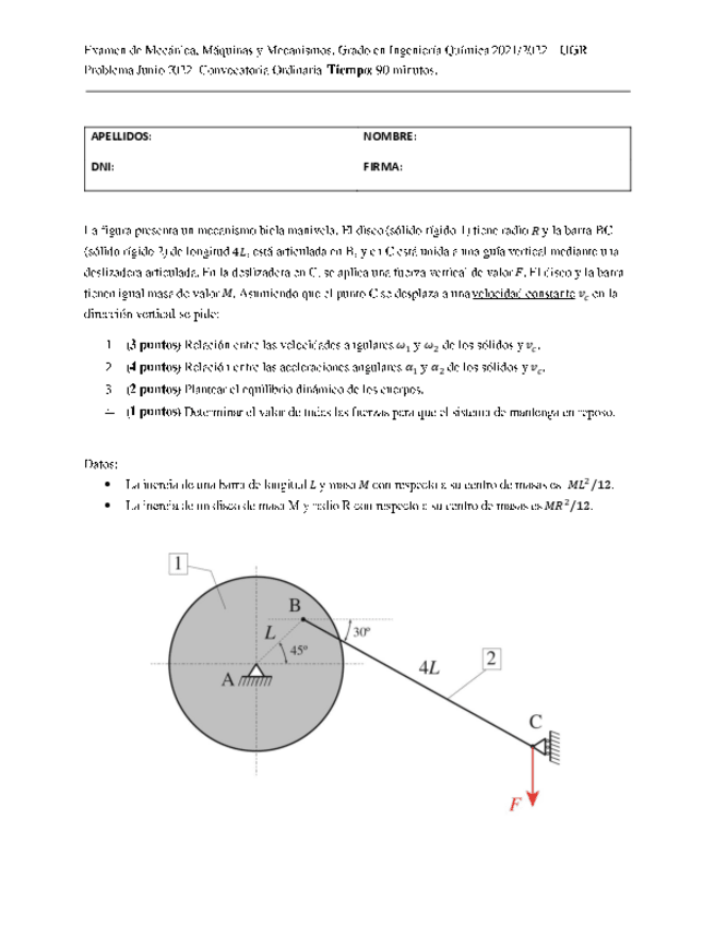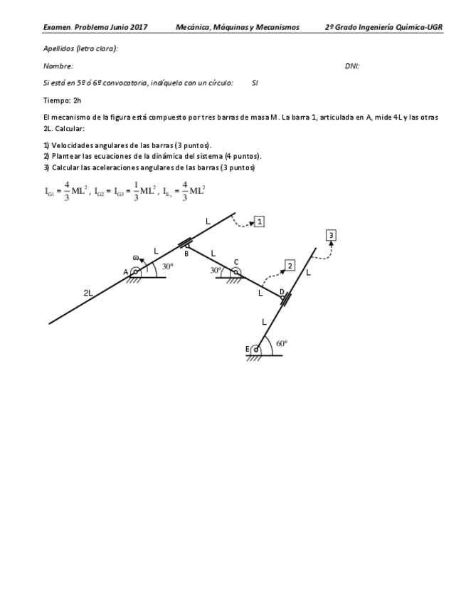 He publicado nuevos examenes de 2º Mecánica, Máquinas y Mecanismos: Problema 2018 IQ.pdf