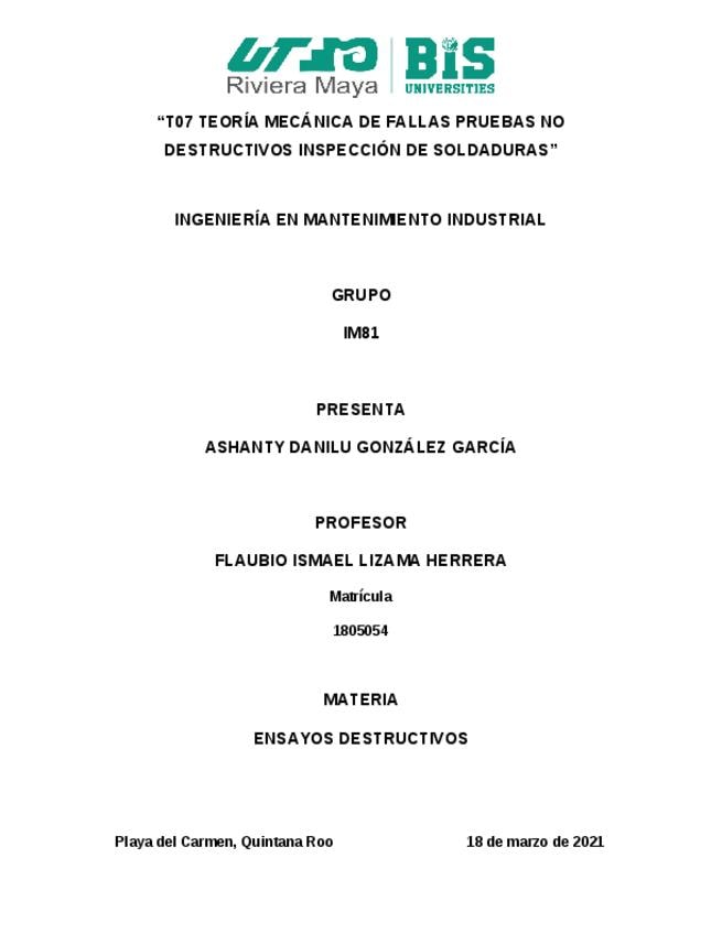 He publicado nuevos apuntes de 3º Mecánica para ingeniería: T07-TEORAA-MECANICA-DE-FALLAS-PRUEBAS-NO-DESTRUCTIVOS-INSPECCIAN-DE-SOLDADURAS.docx