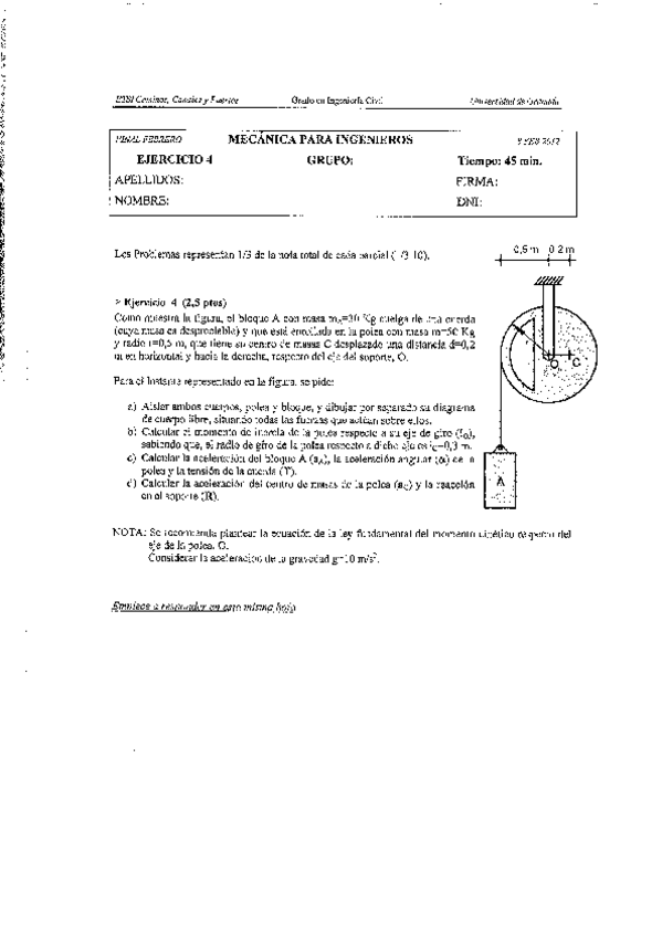 He publicado nuevos apuntes de 2º Mecánica Para Ingenieros: EXAMEN ORDINARIO 21 RESUELTO