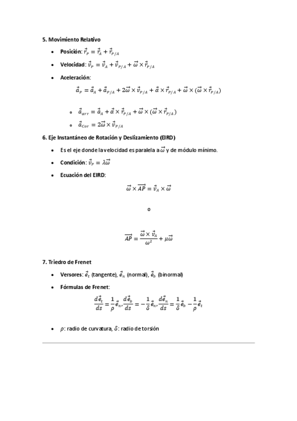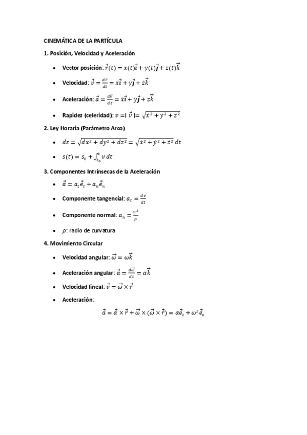 Formulario con todos los conceptos para el 1º Parcial de Mecánica (GEOMETRÍA DE MASAS - CINEMÁTICA)