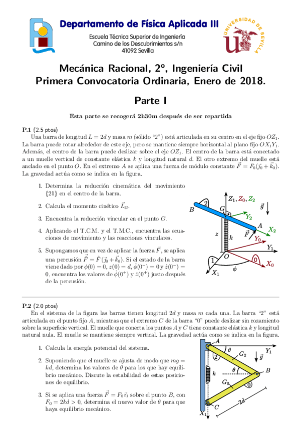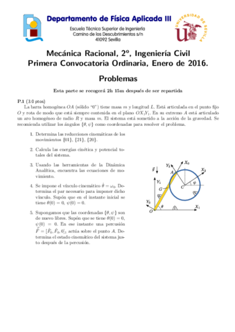He publicado nuevos examenes de 2º Mecánica Racional: Examen Final 2015-16 Resuelto