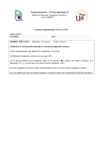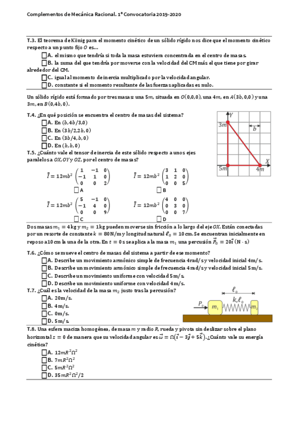 He publicado nuevos examenes de 2º Mecánica Racional: Preguntas de Teoría de Examen