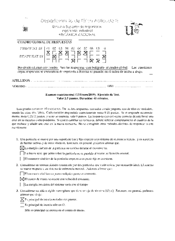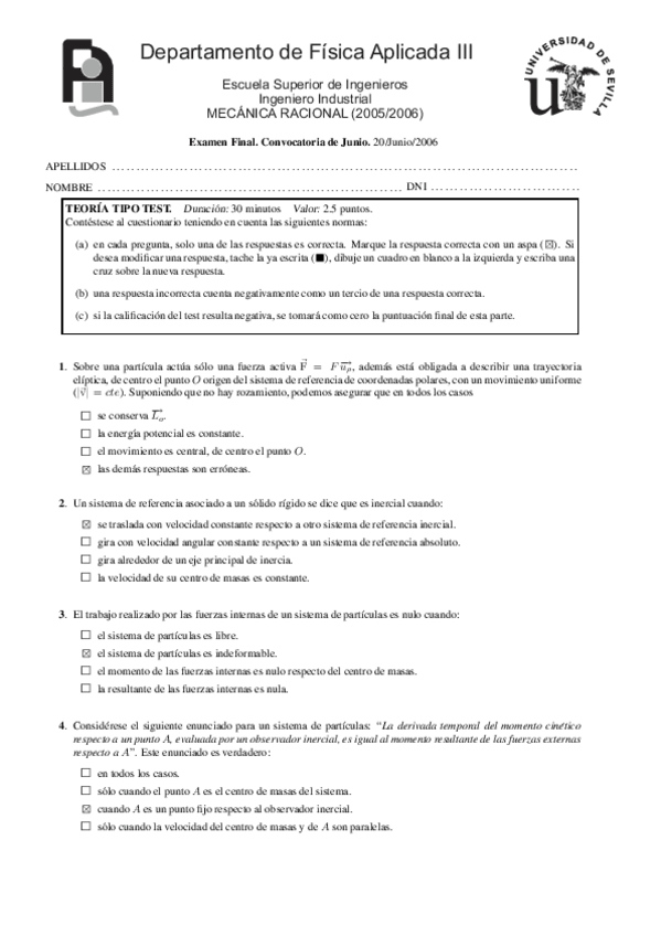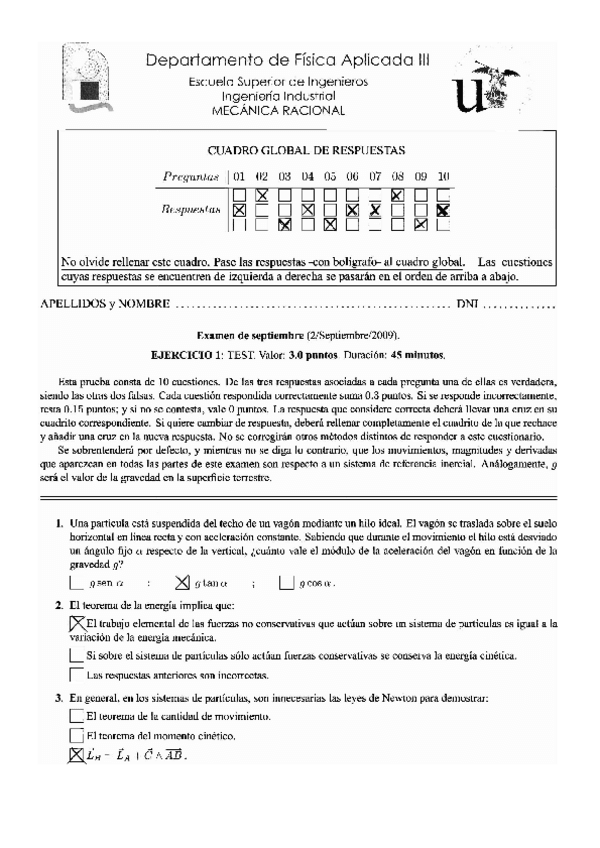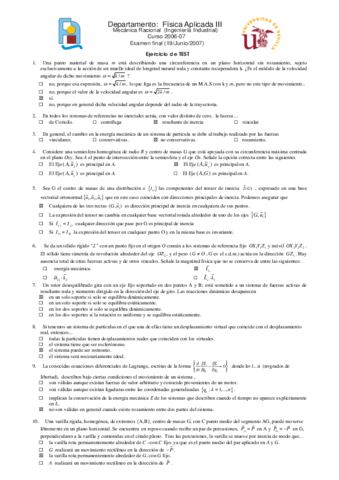 EXAMENES MECÁNICA RACIONAL + SOLUCIONES