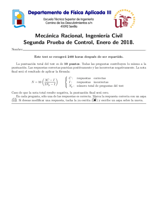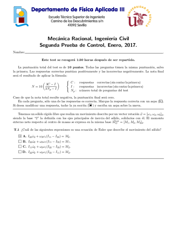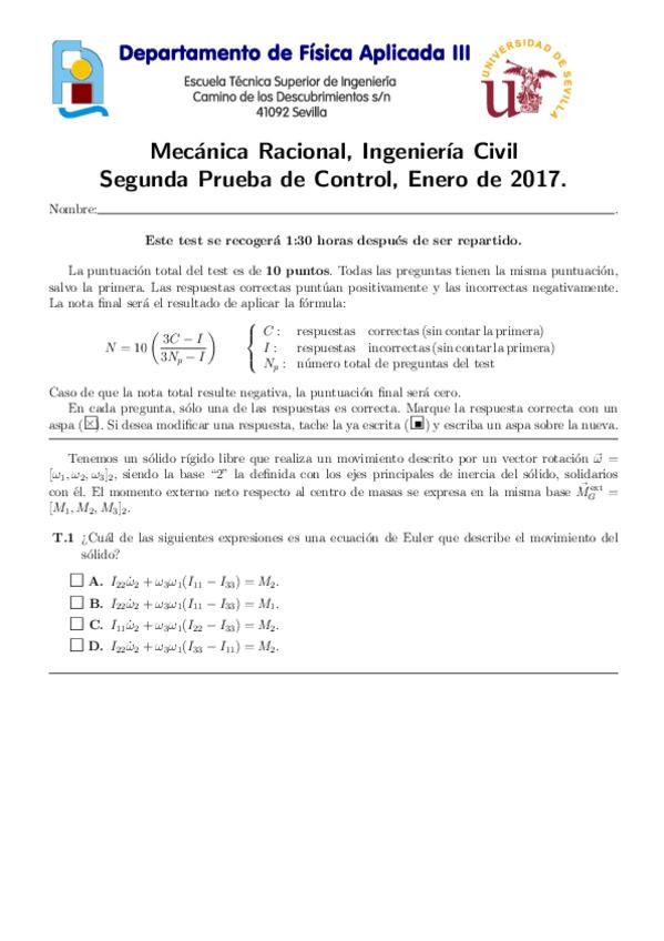 He publicado nuevos examenes de 2º Mecánica Racional: Tests resueltos útiles para aprobar