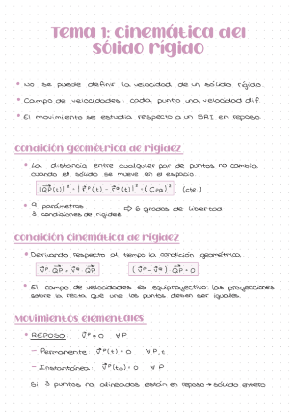 Resumen de los 6 primeros temas de Mecánica Racional a partir de las diapositivas y las clases de Pedro Ángel