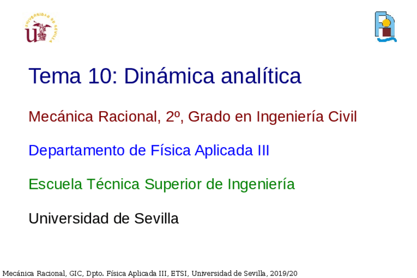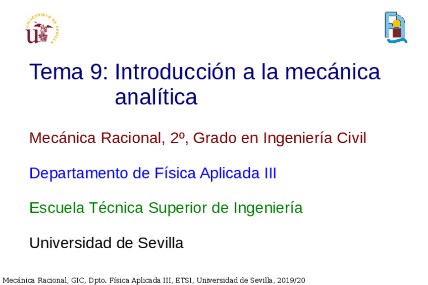 He publicado nuevos apuntes de 2º Mecánica Racional: Todos los temas 2019-2020