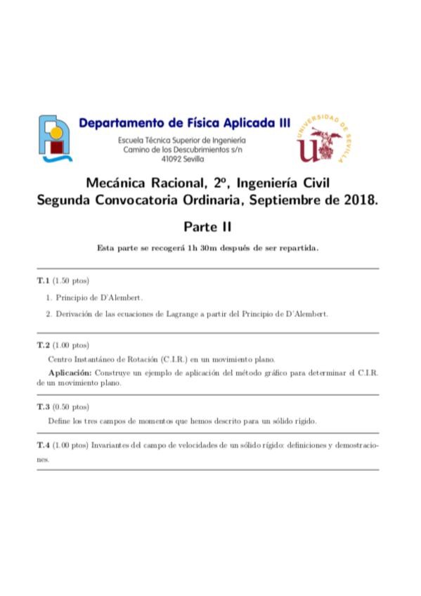 He publicado nuevos examenes de 2º Mecánica Racional: EXAMENES MECÁNICA RACIONAL + SOLUCIONES