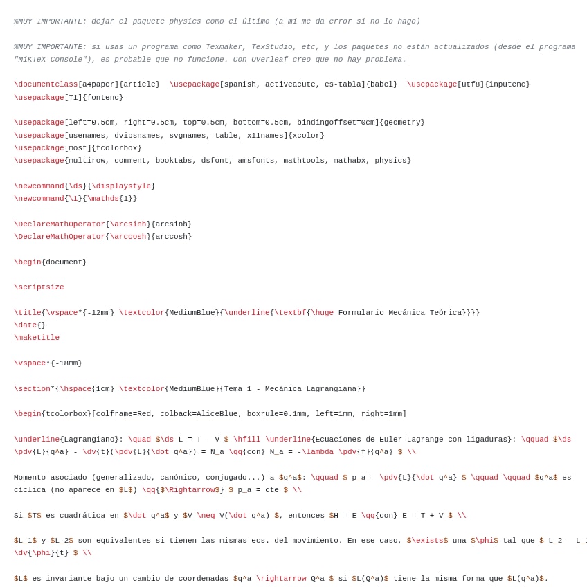 Formulario + su código LATEX