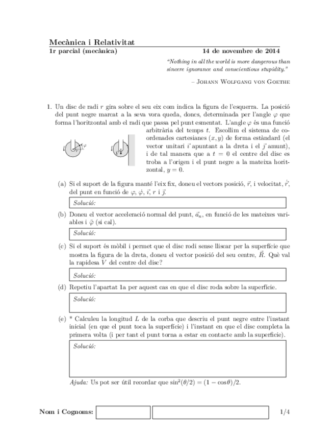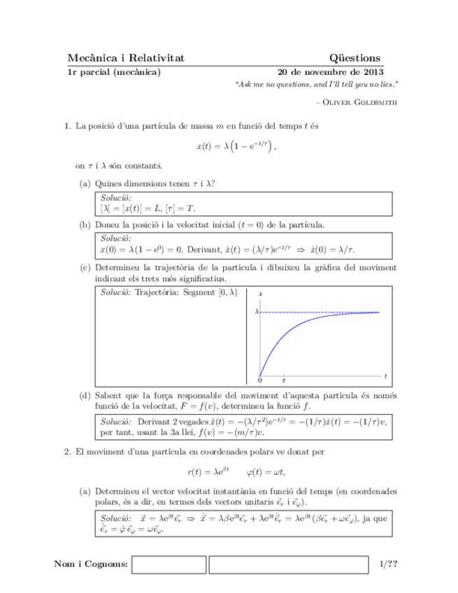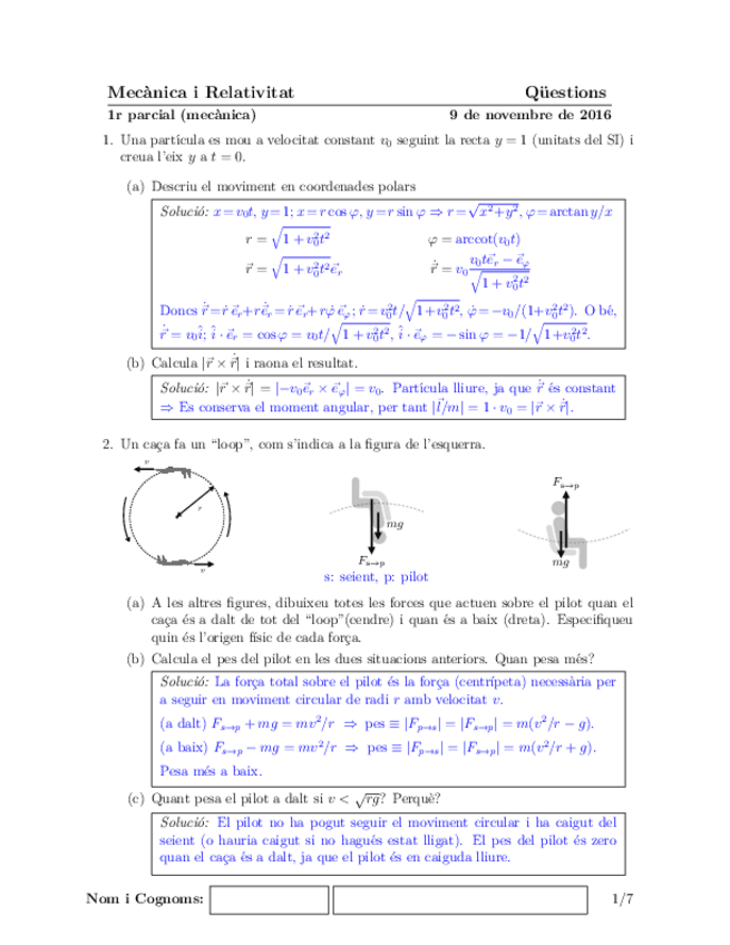 He publicado nuevos examenes de 1º Mecánica y Relatividad: Exàmens + Solucions Mecànica